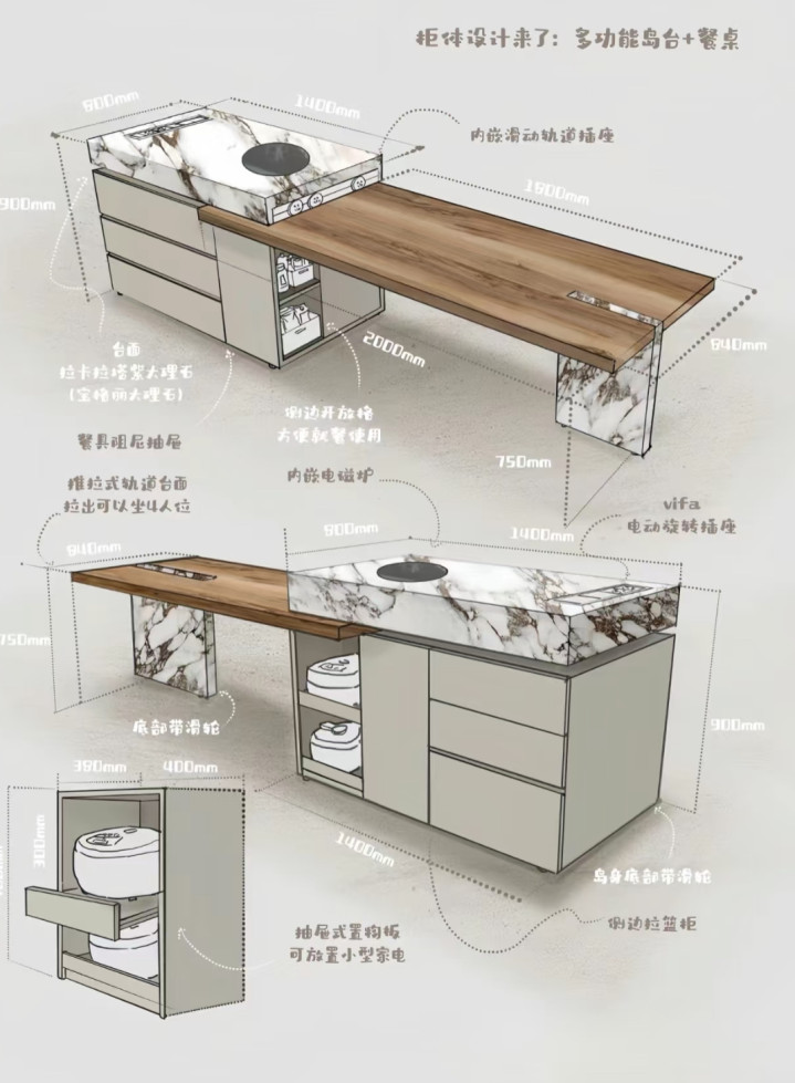 内置西厨魔法抽屉 ,腰不累。