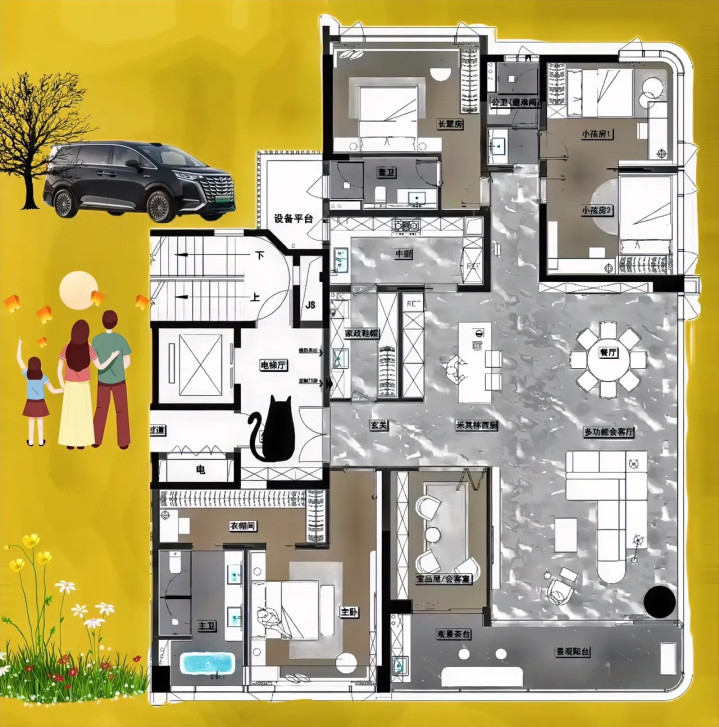 267㎡,你得付出八倍的努力,拿到钥匙。碰到超级大一个横厅,一喜一忧。